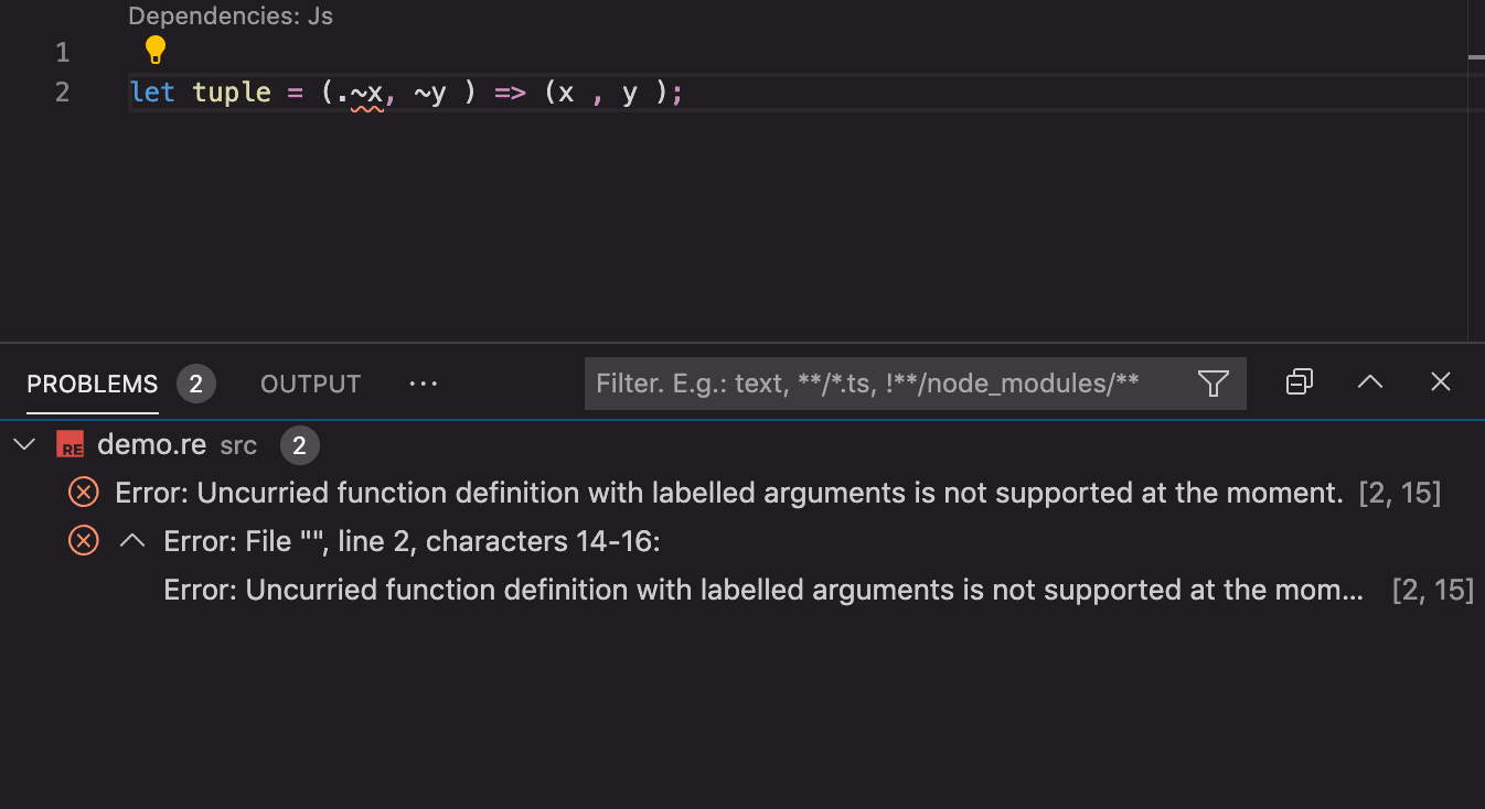 The error messages above are cryptic and hard to understand. And the limitation of not supporting recursive functions make uncurried support pretty weak.